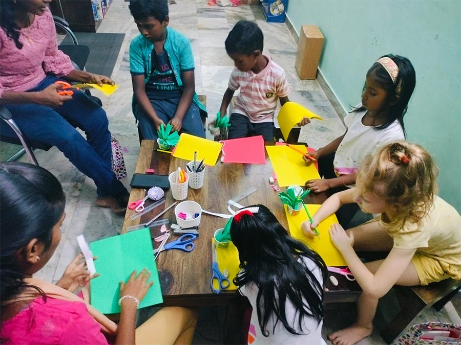 On the topic of Curious Korner’s classes and her thoughts on education, Roopa talks candidly. “For me, learning should be personalised and intuitive. I don’t like the concept of being in a particular class on a particular day because of a certain schedule. My kids are home-schooled, and I follow the same sentiment with the creative space as well. We have books, toys, and games around, and if a student doesn’t feel like attending a workshop, they are free to explore whatever they want. We only have 7 kids per batch, so we can focus on each kid and what they individually want to work on, especially with something like handwriting. For classes like phonics or grammar, we use stories, art, or an activity to give them a better idea of the concept before explaining the language rule itself. This leads to a longer attention span and a keen interest in learning!”