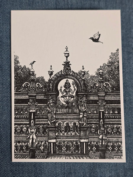 Her sister, Lakshmi, is a full-time artist and graphic designer, and Kasturi is an auditor working in the corporate space. The brand, which Kasturi calls their ‘side hustle’, was born out of sheer passion. Their dream is to bring more stories from Tamil Nadu to the forefront through various multidisciplinary mediums. Their bestselling products are their postcards and jigsaw puzzles, all inspired by Indian architecture and design elements.