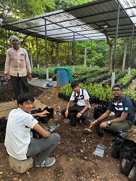 Student volunteers at an indigenous trees nursery