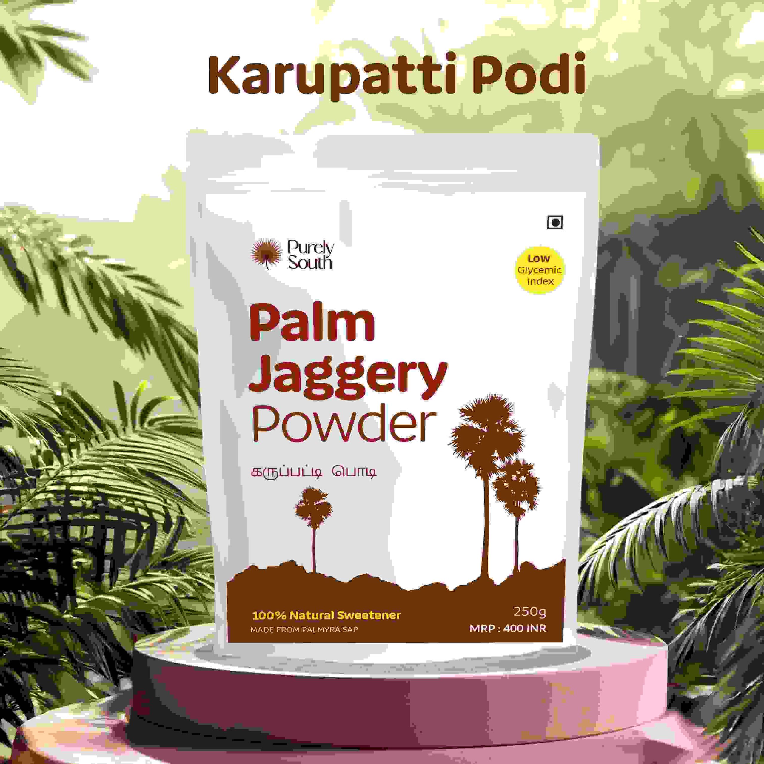 Experience the sweetness of nature with our Palm Jaggery Powder. Made from palmyra sap, this low GI natural sweetener, also known as Karupatti Podi. Palmyra Palm Jaggery Powder offers a healthier alternative to sugar or jaggery. Enjoy the convenience of this traditional ingredient in a convenient form.