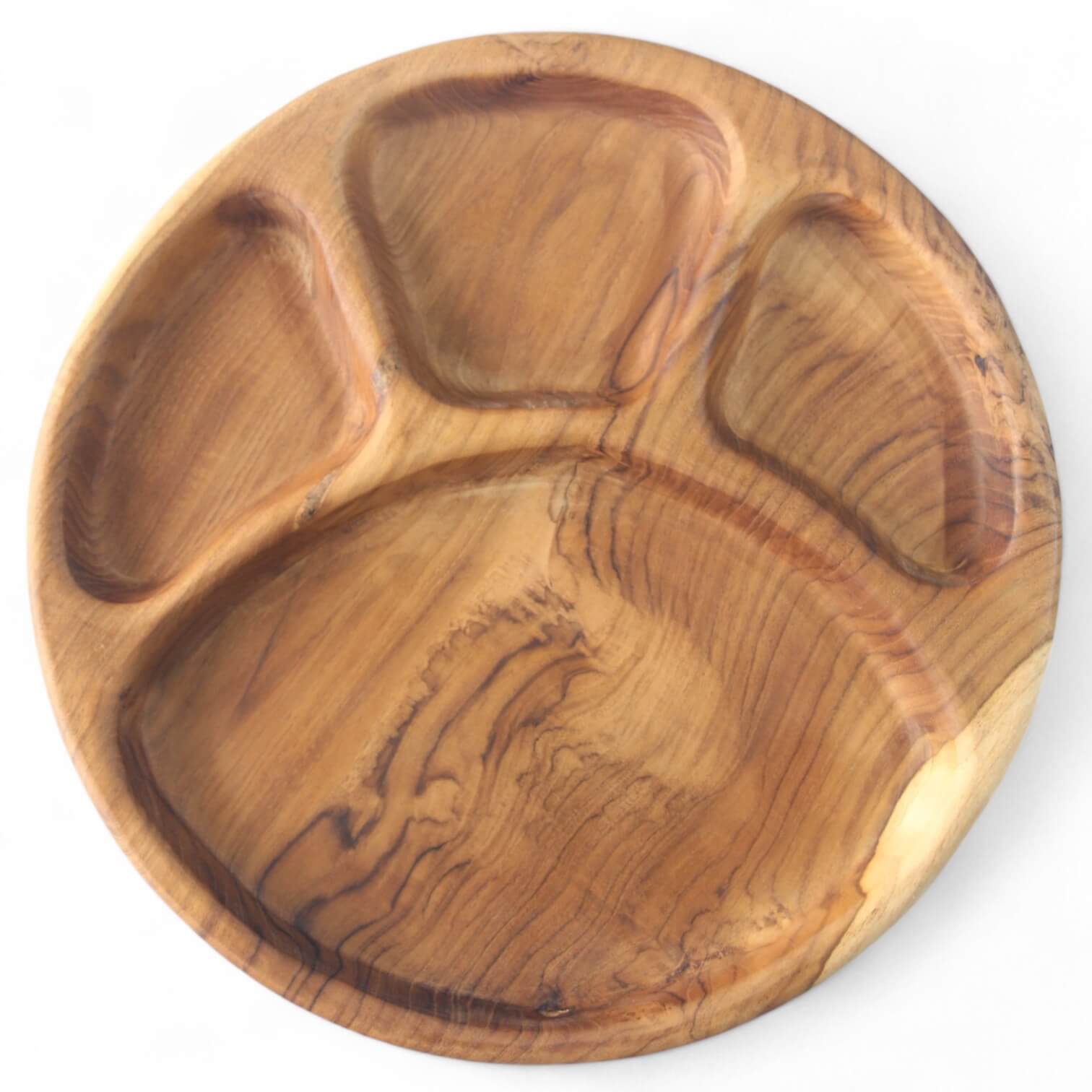 Round plate made from strong teak wood. Ideal for traditional meals or as a serving base.
