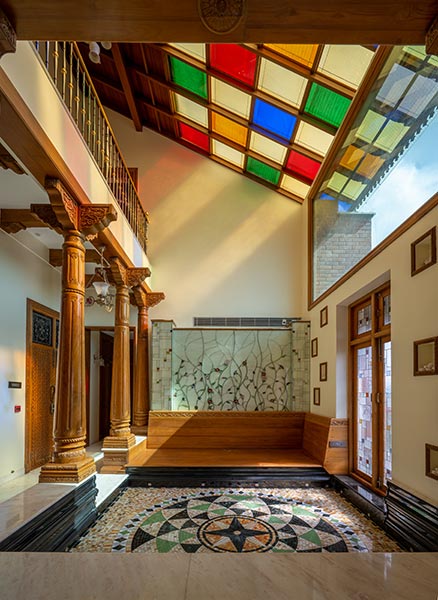 Walking through the creative process at Studio A, Aamena explains, “When we get a call from an owner or architect, we go see the space to gauge the requirements. We get a feel of the space to understand our scope of work ahead. We ask them what they have in mind, and then we send them some design references to get a clear idea and see if we’ve understood their brief. Once they tell us what elements they want, we start drawing. We worked on a homestay in Chikmangalur, where the owner wanted a stained glass door, incorporating a fig tree, peacocks, and bees. Any time we get a client, we design and redesign however many times it takes to get it right, and redo the colours and show them the glass samples until they’re 100% satisfied. We don’t try to sell it to them and convince them. It’s their space, and they have to be happy with it. That’s where the visualisation ends, and the real work begins.”