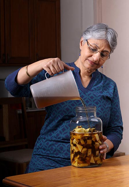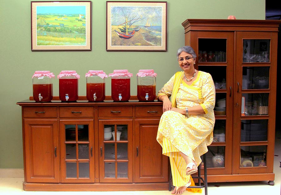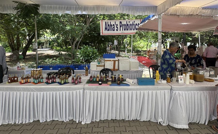 Following her husband’s bout with illness and the loss of his job, Abha wanted to shoulder some of the family’s financial responsibility. “I was already 60 by then, and I didn’t have the energy or health to do a 9-5 job. I wrote for a while, but quickly realised what isolation could do to a person. I wanted to meet and interact with people. I turned to Facebook and began posting about my products. Most people didn’t know anything about probiotics, so I also posted informative articles. Then, people wanted to know where they could buy these drinks. I couldn’t believe it! Through word of mouth, my customer base grew, allowing me to increase my production from one jar to around 8 litres. I began experimenting with more probiotic drinks like ginger ale and pineapple tepache and expanded my range.” Feedback from friends, family, and strangers reinforced her confidence.