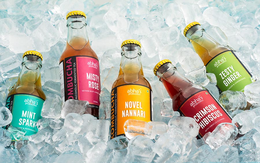 Abha’s Probiotics’ innovative Kombucha flavours- Spearmint and Peppermint, Rose and Vetiver, Nannari, Hibiscus, and Ginger and Lemongrass
